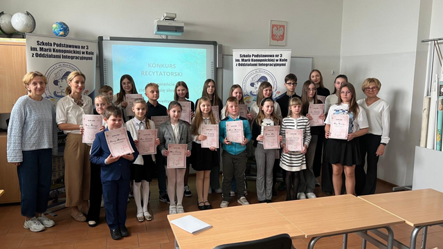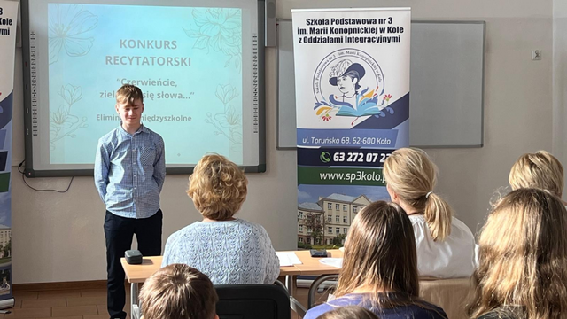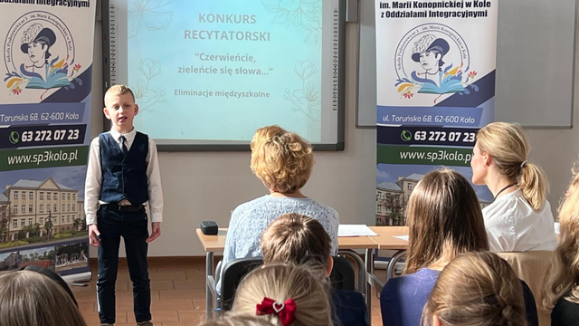 Za nami eliminacje Międzyszkolnego Konkursu Recytatorskiego „Czerwieńcie, zieleńcie się słowa...”. W wydarzeniu wzięło udział 28 uczniów ze szkół podstawowych z Koła, prezentując wysoki poziom artystyczny i ogromne zaangażowanie. Rywalizacja przebiegała w trzech grupach wiekowych. Ostatecznie do dalszego etapu konkursu zakwalifikowało się siedmiu uczniów.