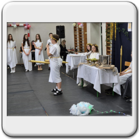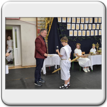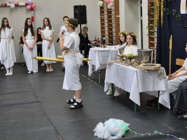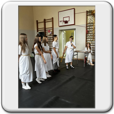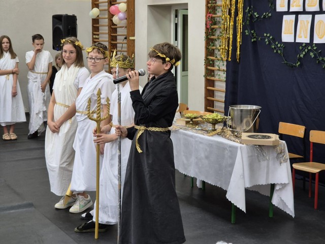 Na koniec Zeus uroczyście przekazał władzę nad Grecją..., tzn. szkołą -