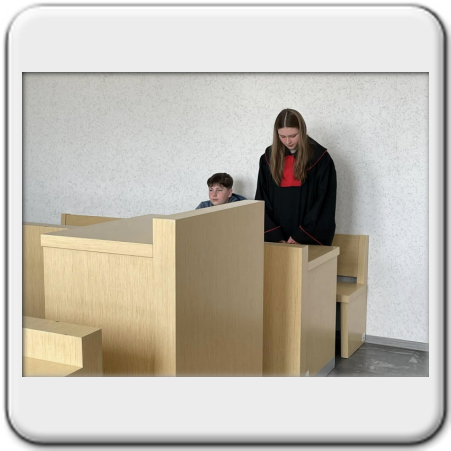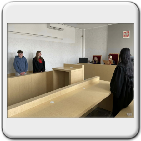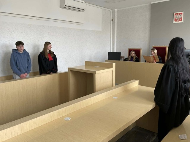 Uczniowie klasy 8b mieli okazję czynnie uczestniczyć w symulacji rozprawy sądowej. W trakcie zajęć wcielali się w role ławników, prokuratora, obrońcy i innych uczestników postępowania. Celem symulacji było rozwijanie świadomości prawnej i obywatelskiej oraz kształtowanie postawy odpowiedzialności za swoje czyny.