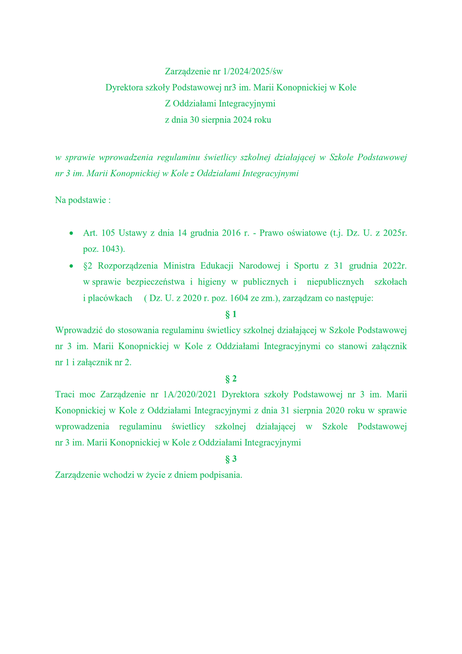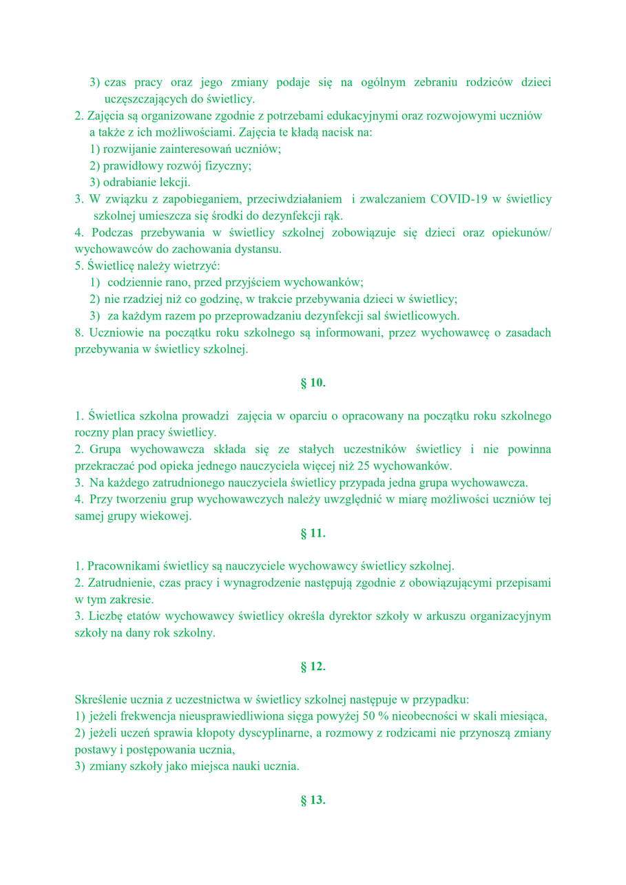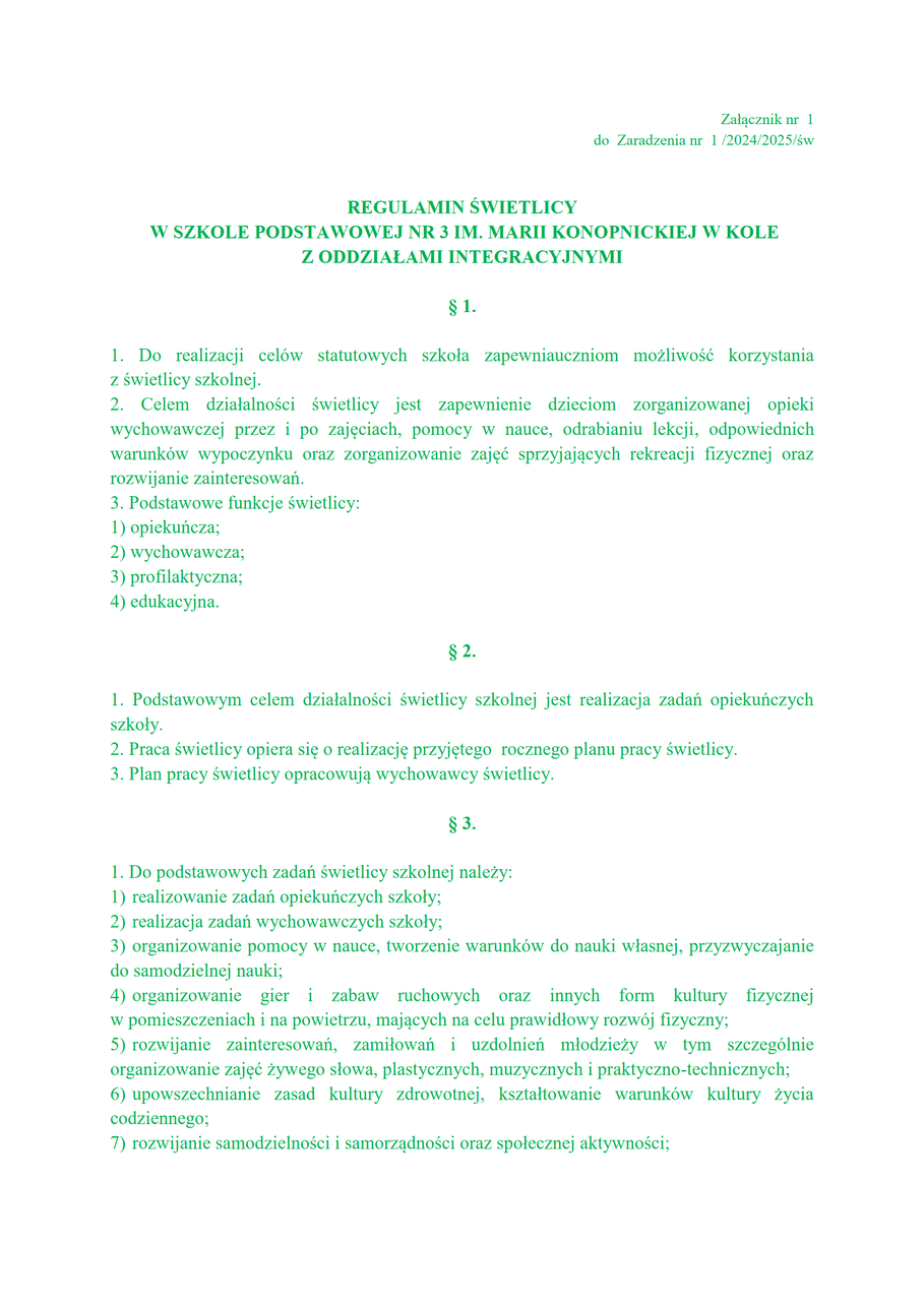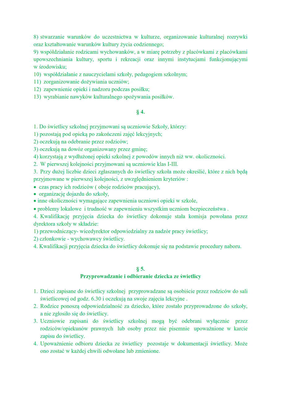 Regulamin świetlicy i stołówki szkolnej