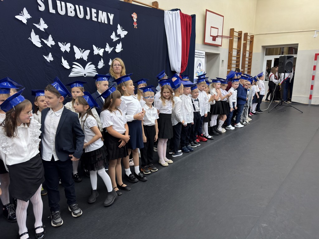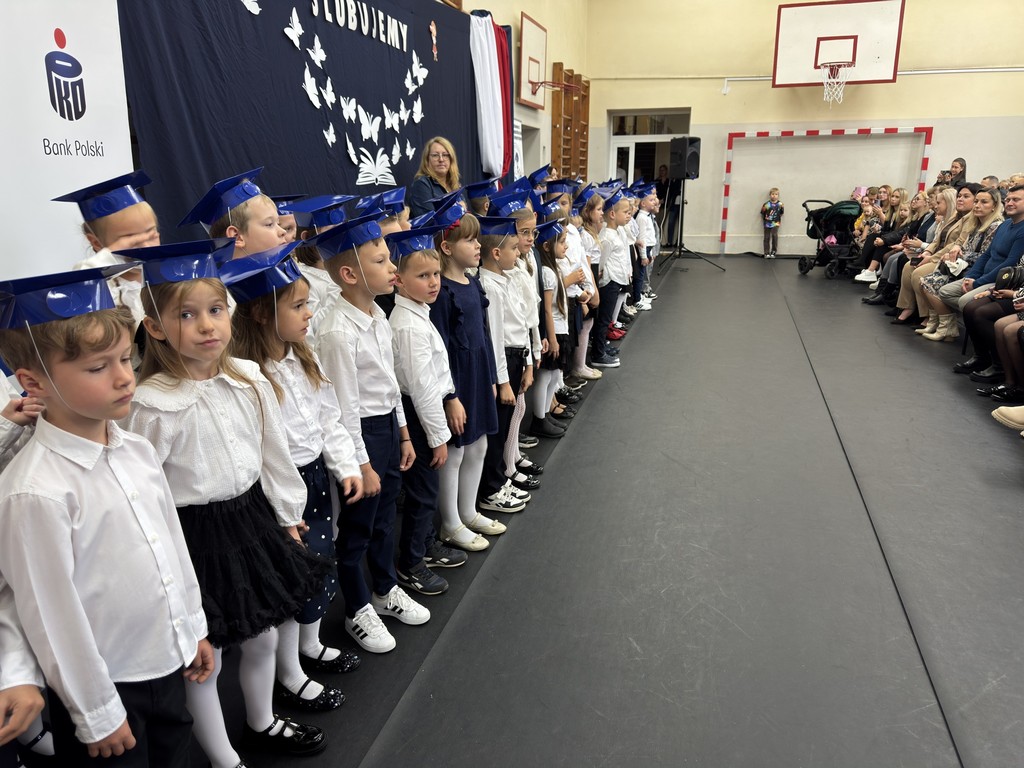 Uroczystość rozpoczęła się od części artystycznej przygotowanej przez pierwszoklasistów pod opieką swoich wychowawczyń. Dzieci z wielkim zaangażowaniem recytowały wiersze, śpiewały piosenki i prezentowały swoje umiejętności, udowadniając, że są gotowe, by stać się pełnoprawnymi uczniami naszej szkoły.