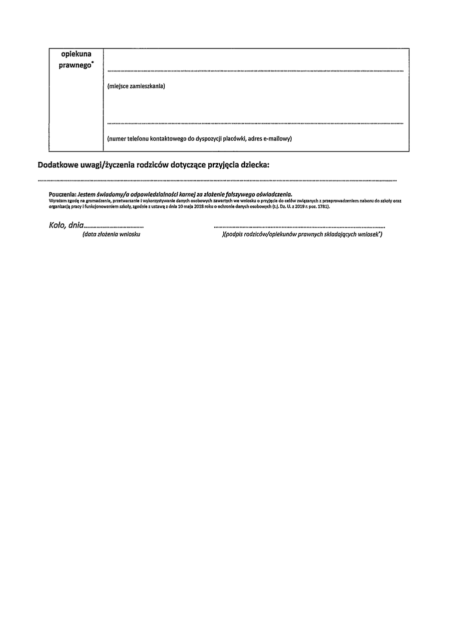 Pobierz - Wniosek o przyjęcie dziecka do szkoły podstawowej nr 3 w Kole
