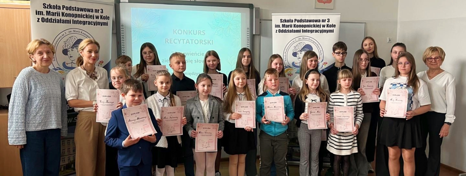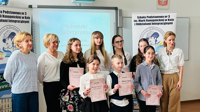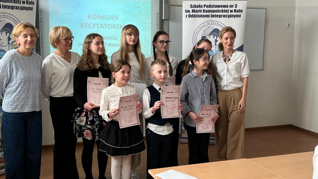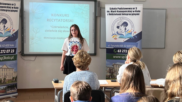 Za nami eliminacje Międzyszkolnego Konkursu Recytatorskiego „Czerwieńcie, zieleńcie się słowa...”. W wydarzeniu wzięło udział 28 uczniów ze szkół podstawowych z Koła, prezentując wysoki poziom artystyczny i ogromne zaangażowanie. Rywalizacja przebiegała w trzech grupach wiekowych. Ostatecznie do dalszego etapu konkursu zakwalifikowało się siedmiu uczniów.