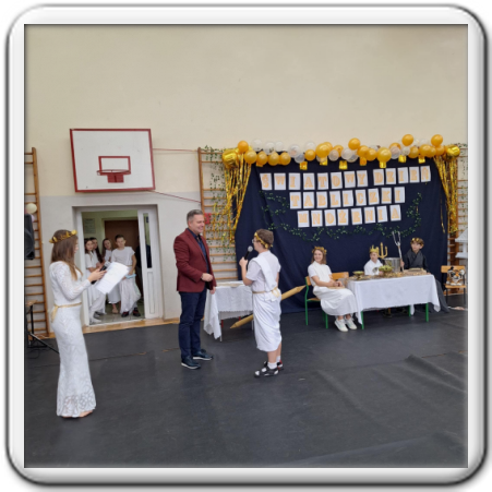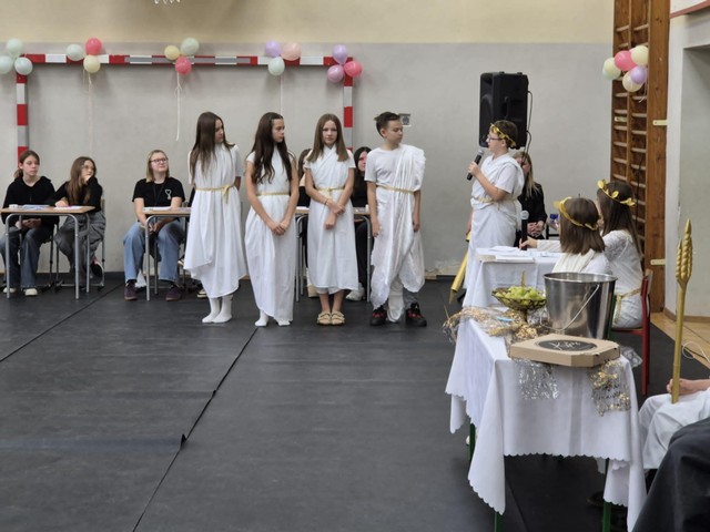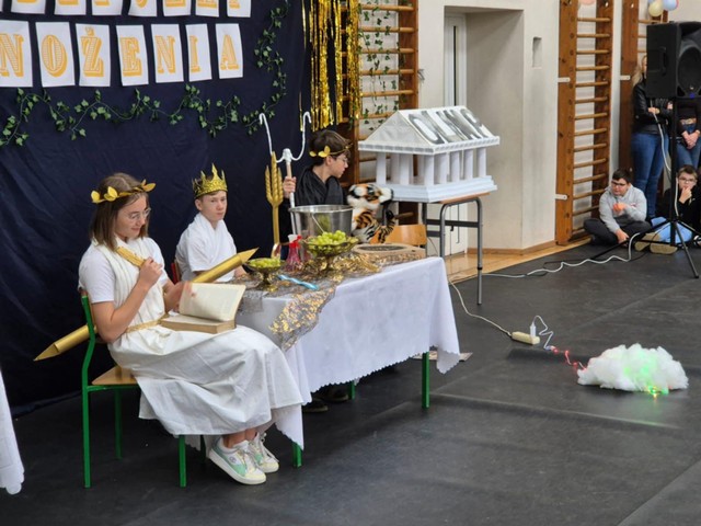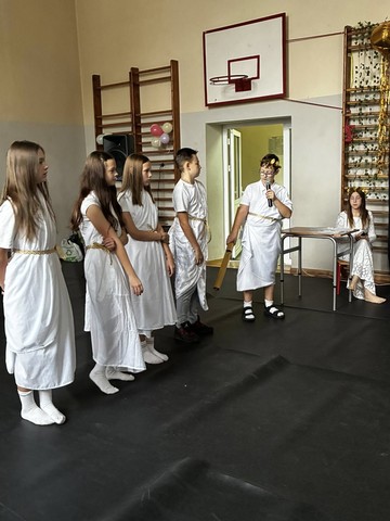 Na koniec Zeus uroczyście przekazał władzę nad Grecją..., tzn. szkołą -