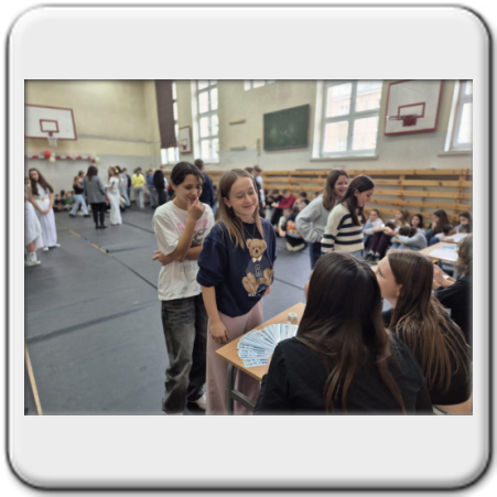 Dodatkowo tego dnia role się odwróciły! Pod hasłem „MŁODSI SPRAWDZAJĄ, CZY STARSI TABLICZKĘ MNOŻENIA ZNAJĄ” po szkolnych korytarzach ruszył dziś specjalny patrol, który… sprawdzał nauczycieli!