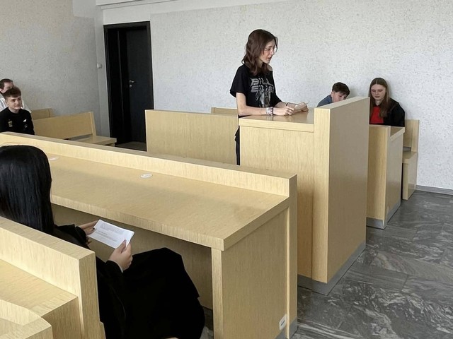 Uczniowie klasy 8b mieli okazję czynnie uczestniczyć w symulacji rozprawy sądowej. W trakcie zajęć wcielali się w role ławników, prokuratora, obrońcy i innych uczestników postępowania. Celem symulacji było rozwijanie świadomości prawnej i obywatelskiej oraz kształtowanie postawy odpowiedzialności za swoje czyny.