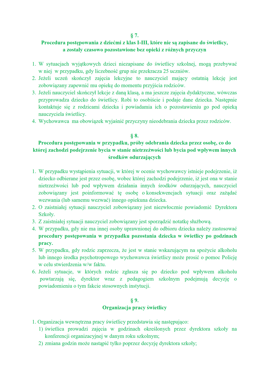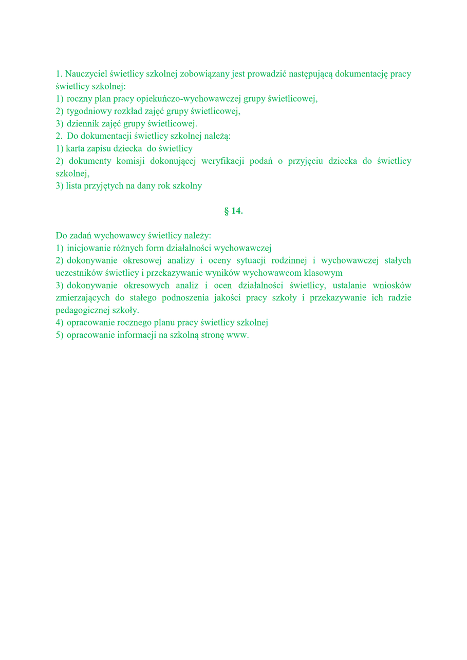 Regulamin świetlicy i stołówki szkolnej