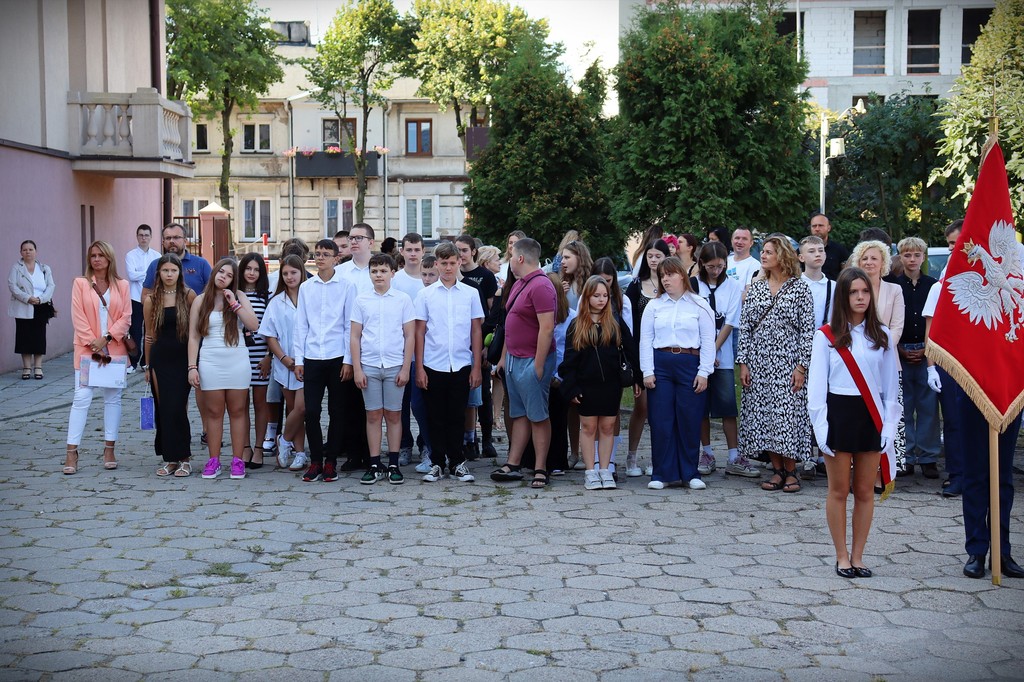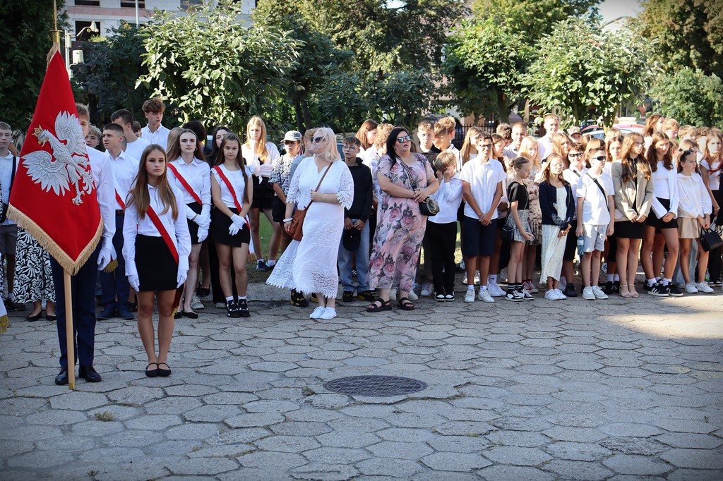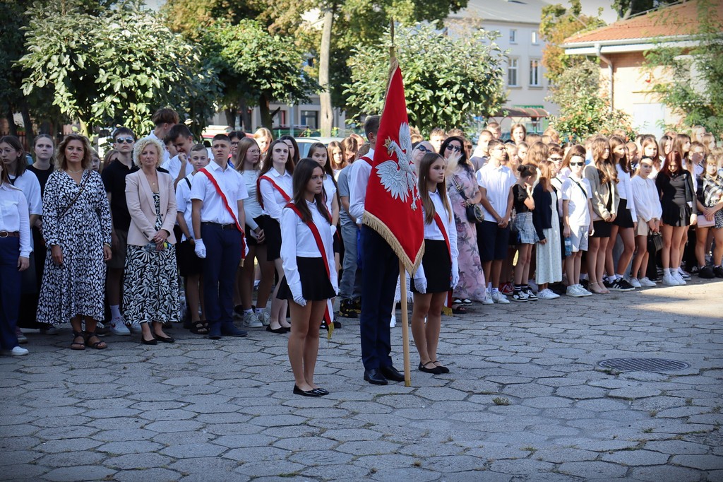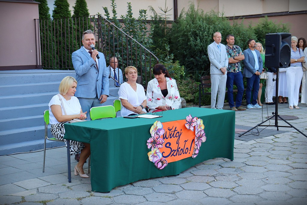 Podczas akademii Pan Dyrektor Paweł Rakowski powitał wszystkich zebranych, szczególnie ciepło kierując słowa do uczniów rozpoczynających naukę w naszej szkole. W swoim przemówieniu podkreślił znaczenie wspólnej pracy, wytrwałości i wzajemnego szacunku, które będą nam towarzyszyć przez kolejne miesiące.