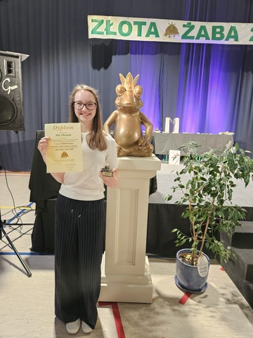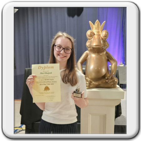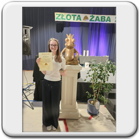 Z dumą informujemy, że nasza uczennica Maja Okupnik odniosła ogromny sukces w prestiżowym ogólnopolskim konkursie Złota Żaba. Maja znalazła się w gronie laureatów w kategorii języka polskiego.To wyjątkowe osiągnięcie, które świadczy o jej niezwykłych umiejętnościach humanistycznych oraz pasji do literatury i języka ojczystego.