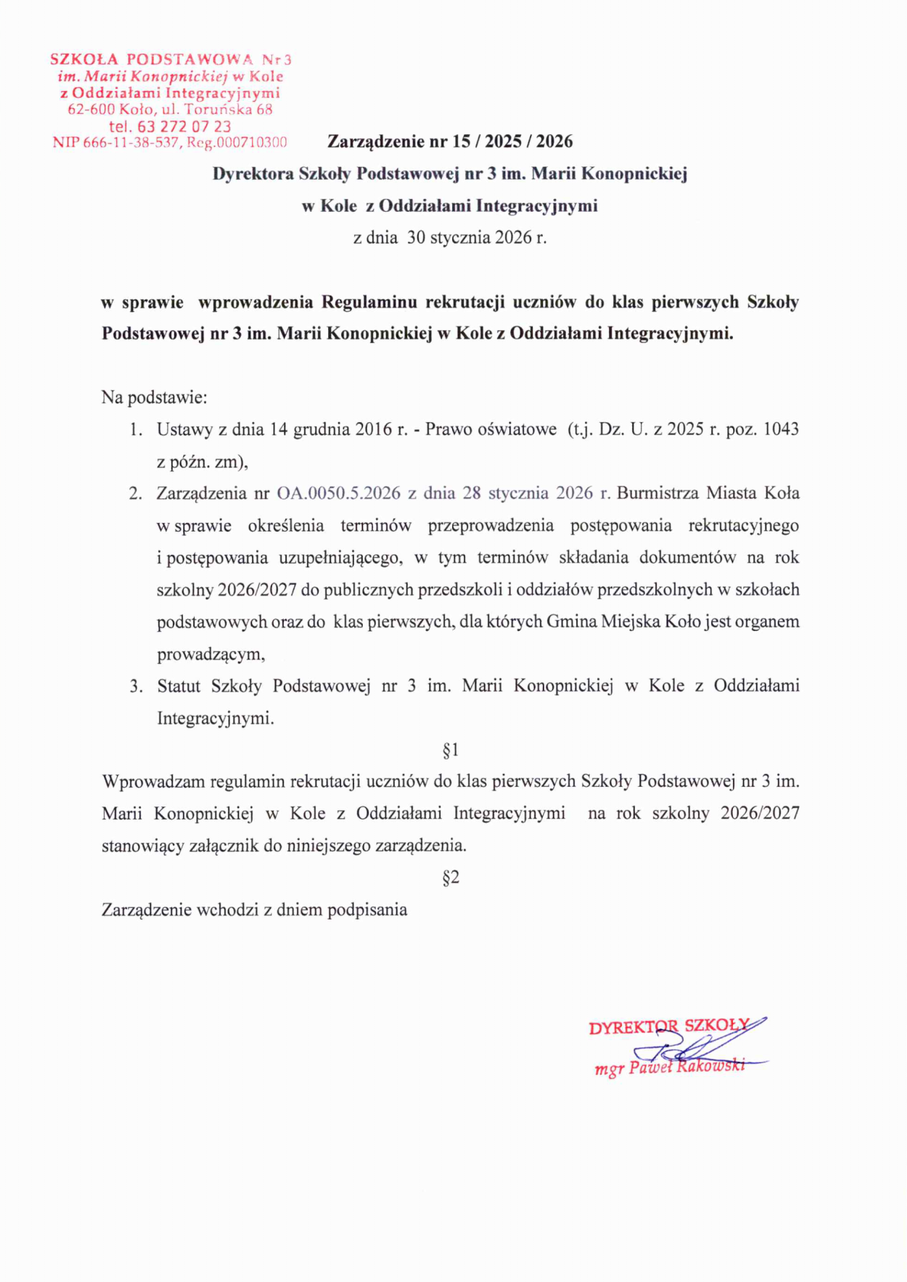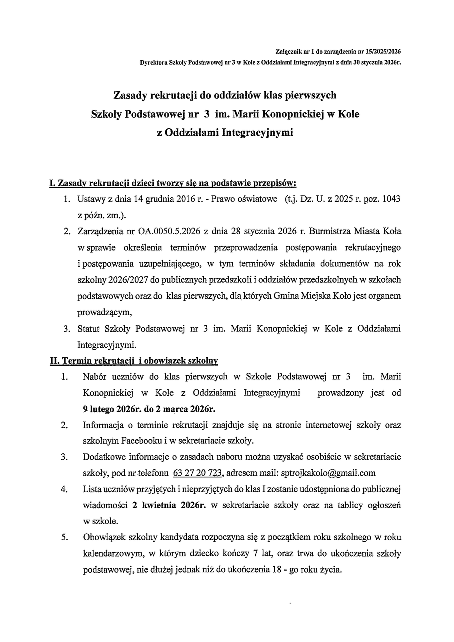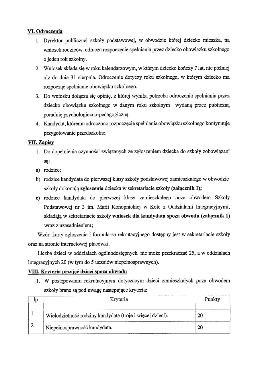 Zasady rekrutacji do oddziałów klas pierwszych - Szkoła Podstawowa nr 3 w Kole